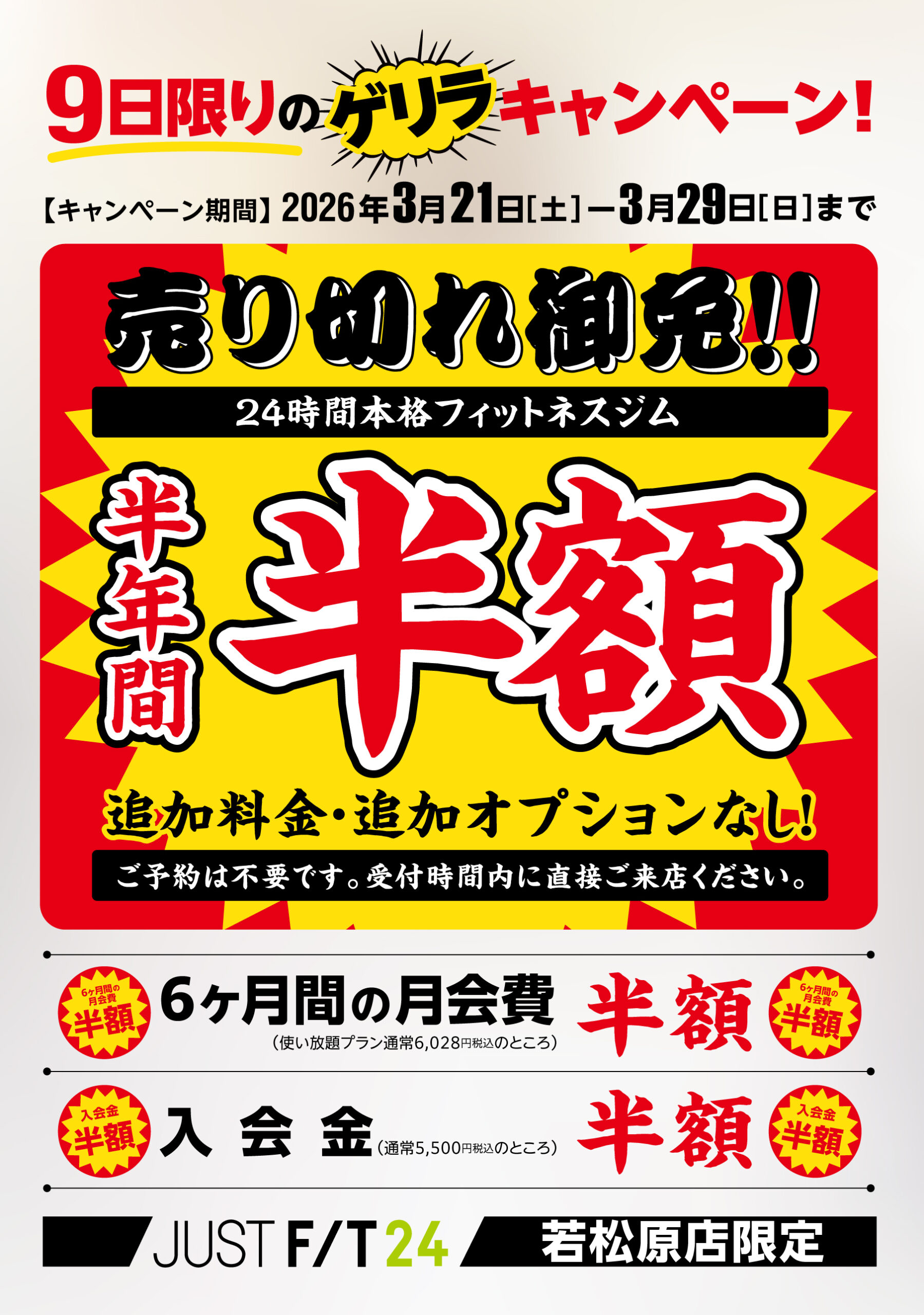 3月21日(土)〜3月29日(日)まで、9日間限りのゲリラキャンペーンを開催します。