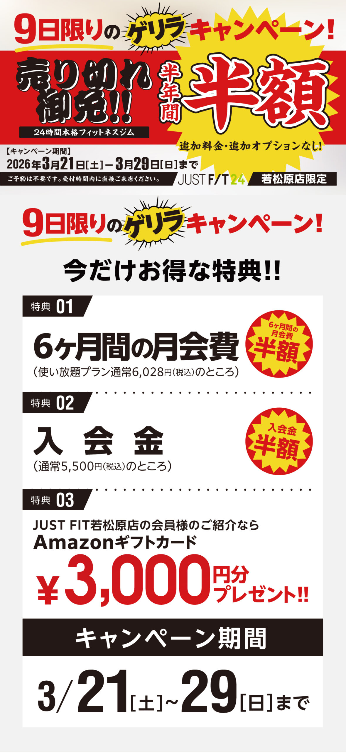 《特典03》JUST FIT 若松原店の会員様のご紹介ならAmazonギフトカード「3,000円分プレゼント」!!