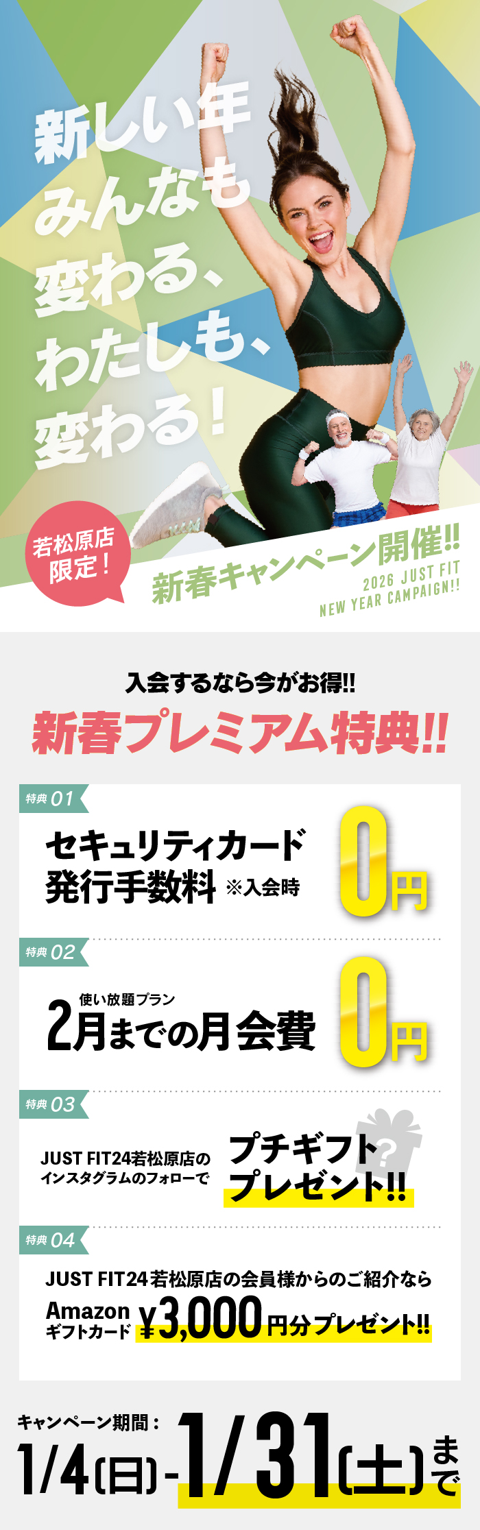 2026年の年明けとともに、皆様の運動習慣を応援する特別なキャンペーンを実施いたします!